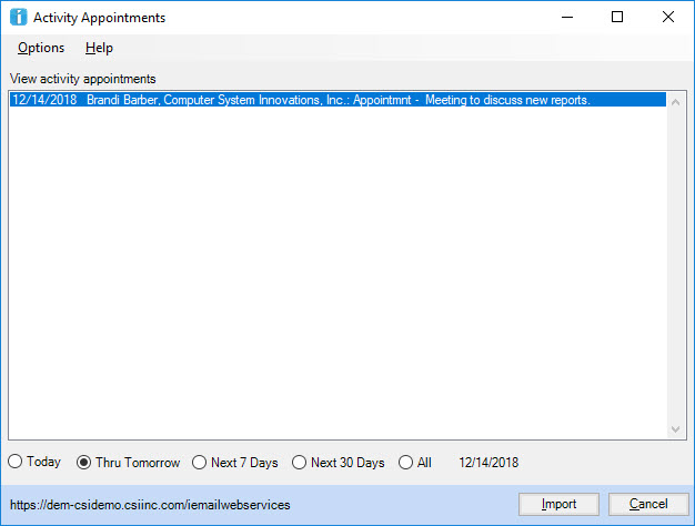 To import Tasks and Appointments from your iMIS database to your Tasks and Calendar in Outlook™