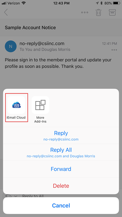 3. Use the iEmail Cloud add-in like you would on a desktop computer.