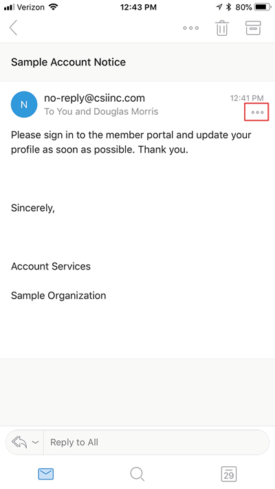 Open an existing email message to read, and click the "•••" menu in the upper-right corner.