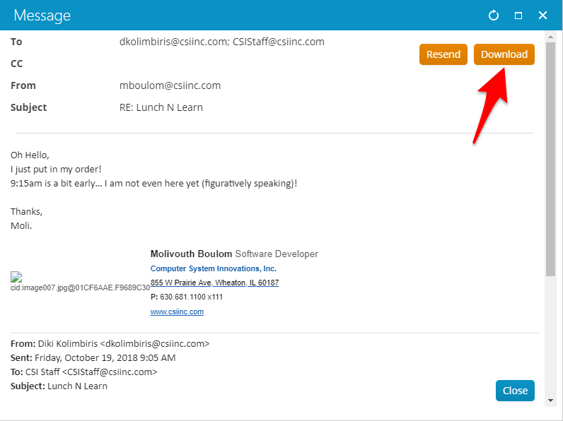 If your interaction has an attachment, clicking on the download button may display an error message like this: