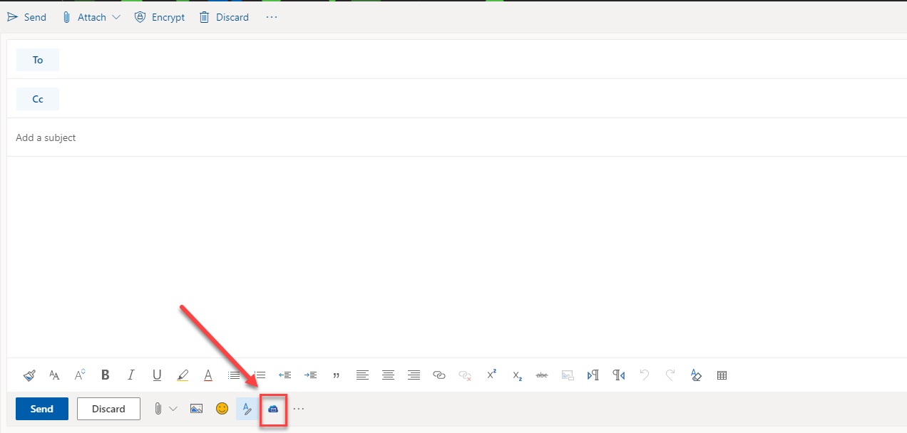 If you are composing an e-mail, click the blue iEmail Cloud icon in the center bottom of the compose screen.