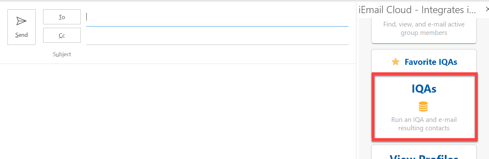 After opening iEmail Cloud and signing in, IQA queries can be searched here: