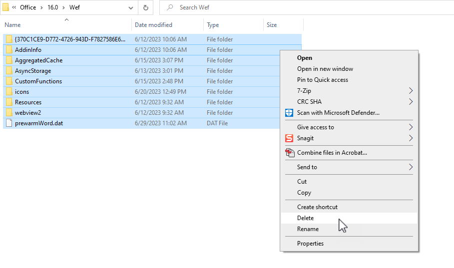 Select all the files and folders inside the “Wef” folder and delete them