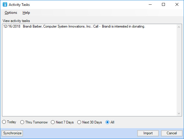 To import Tasks and Appointments from your iMIS database to your Tasks and Calendar in Outlook™