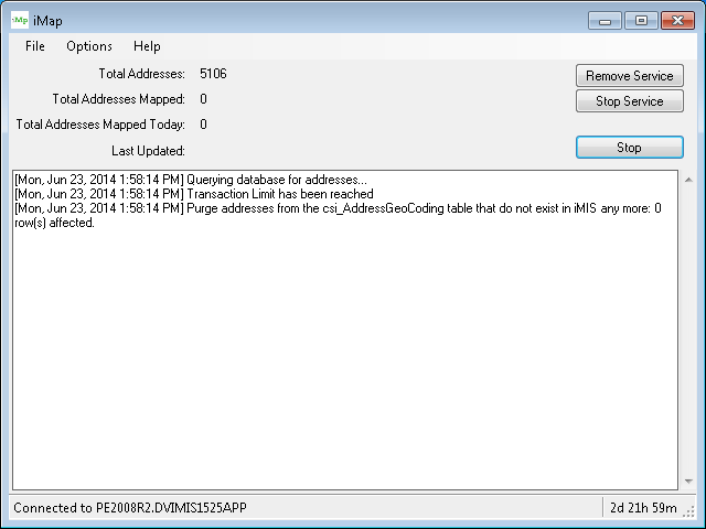Note: The Windows application program is only intended to configure and troubleshoot the setting. Once setup, the Windows service should operate the geocoding process continuously in the background.