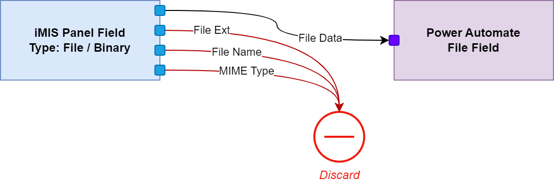 Shown above, when sending a file from iMIS to Power Automate, we can simply discard the extra information that Power Automate does not have inputs for.