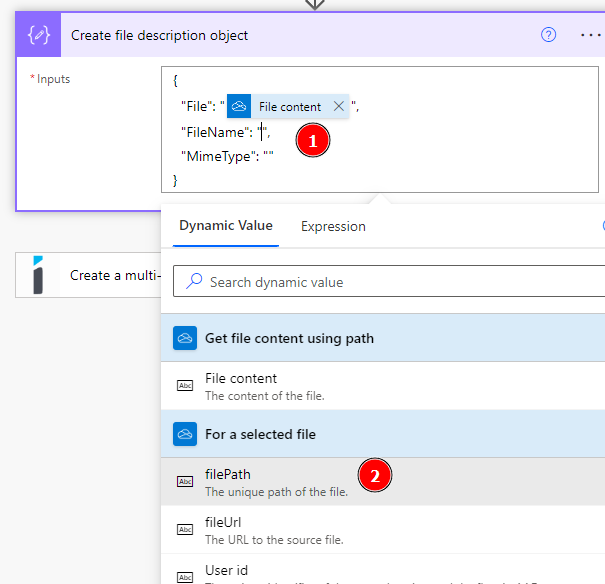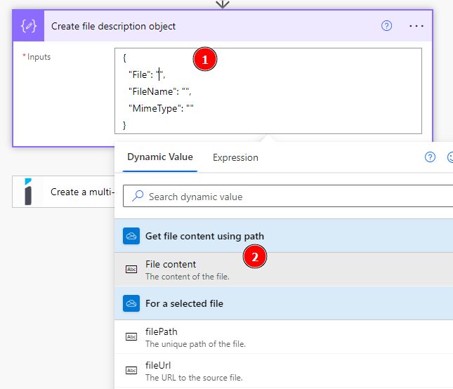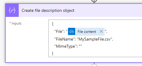 Follow these steps to create a file description wrapper object in your Power Automate flow.