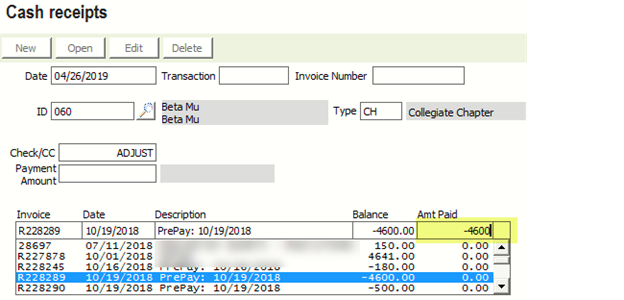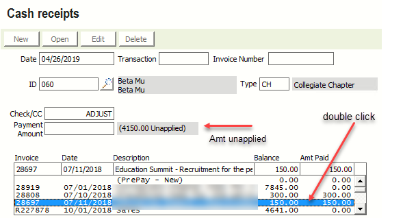 Now, double click on the individual charges you want to pay off. iMIS will NOT over apply and will keep track of how much of the credit you have used