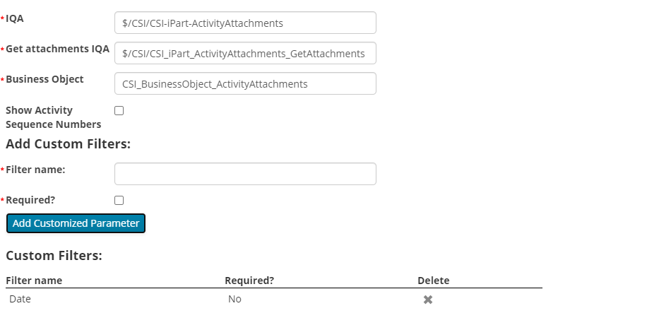 13. Add custom filters to be used with the CSI-iPart-ActivityAttachments IQA