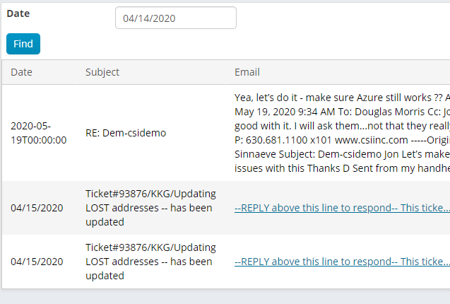 17. Navigate to a user with emails and/or email attachments and you should see the iPart at the bottom of the screen, results will be shown on page load if there are no custom filters added to the iPart.