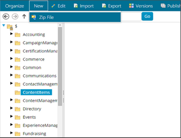 3. Select New > Zip File and upload the zip file you were given (CSI-iPart-ActivityAttachments.zip)