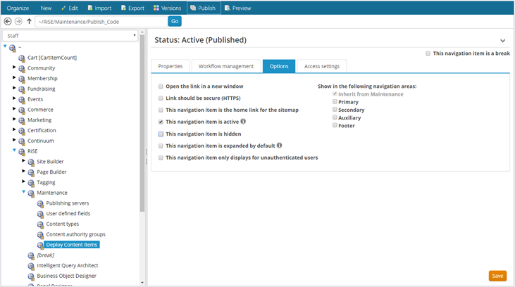 7. Go to RiSE > Maintenance > Deploy Content Items