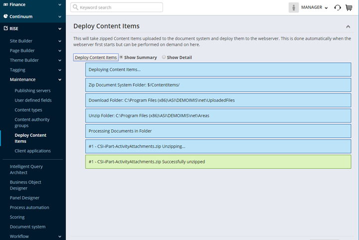 8. Go toRiSE > Maintenance > Deploy Content Items and click Deploy Content Items.