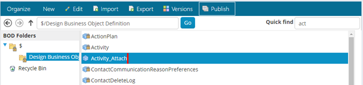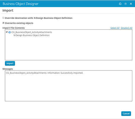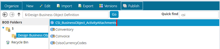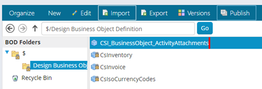 8. You should see the new business object CSI_BusinessObject_ActivityAttachments that we just imported.