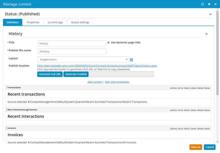 Navigate to your (potentially customized) Staff/Tabs folder (usually under Shared Content/Staff/Tabs. If it’s not there, open a contact from the Communities/Find Contacts page. Click on the contact’s History tab at the top. Note the entire URL. It will give you clues as to where your customized Staff site content is located.)