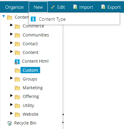 If the Custom folder does not already exist, create a new folder named Custom. Select the Allow only the following types of objects in this folder option and select only Content Type from the list.