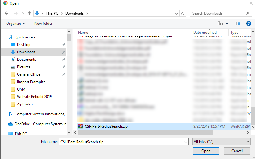 Browse to and select the iPart ZIP file to upload