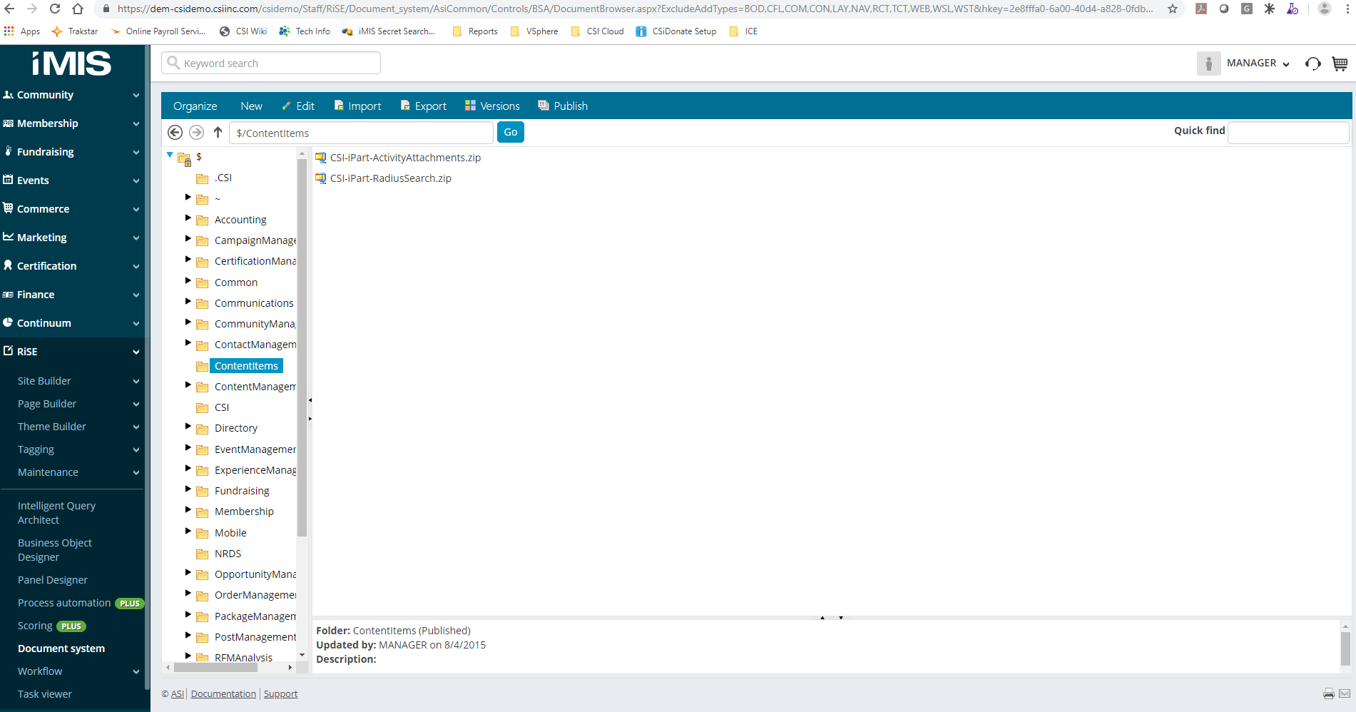 Navigate to the menu item RiSE > Document System.