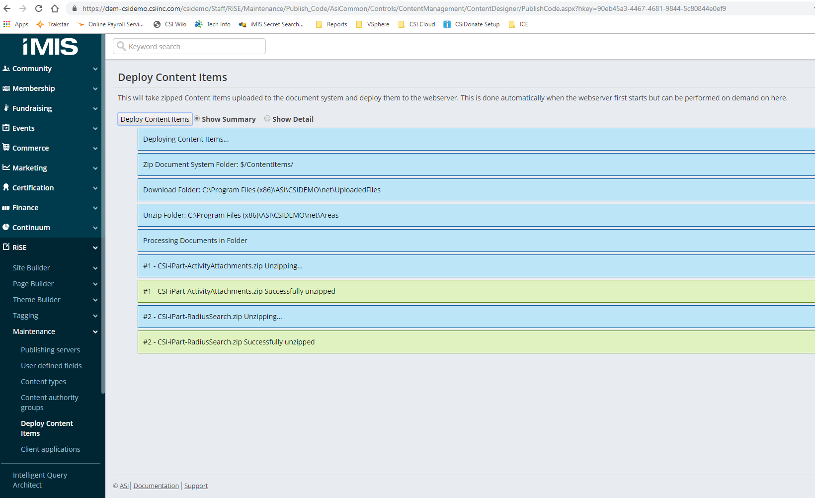 Navigate to the menu item RiSE > Maintenance > Deploy Content Items