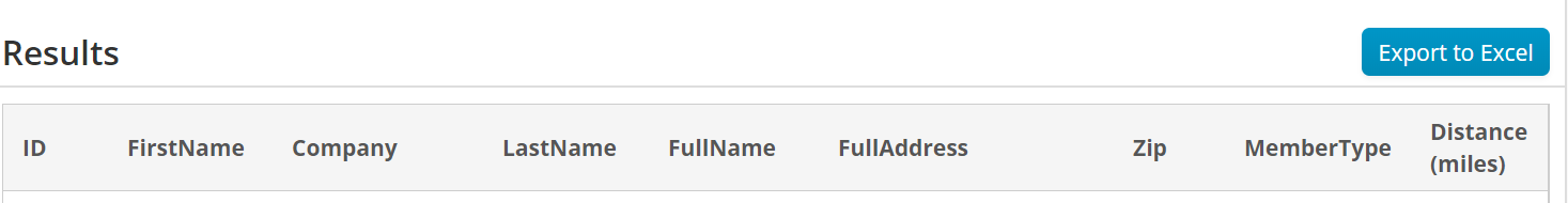 The screenshot below shows the results of a Radius Search iPart query which includes the Export to Excel button.
