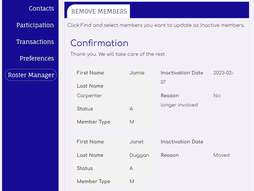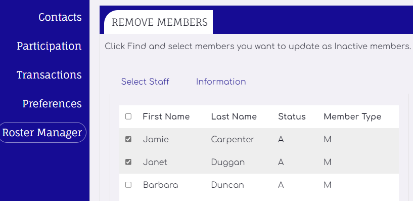 Select members to remove from roster