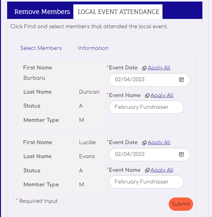 Select members that attended event