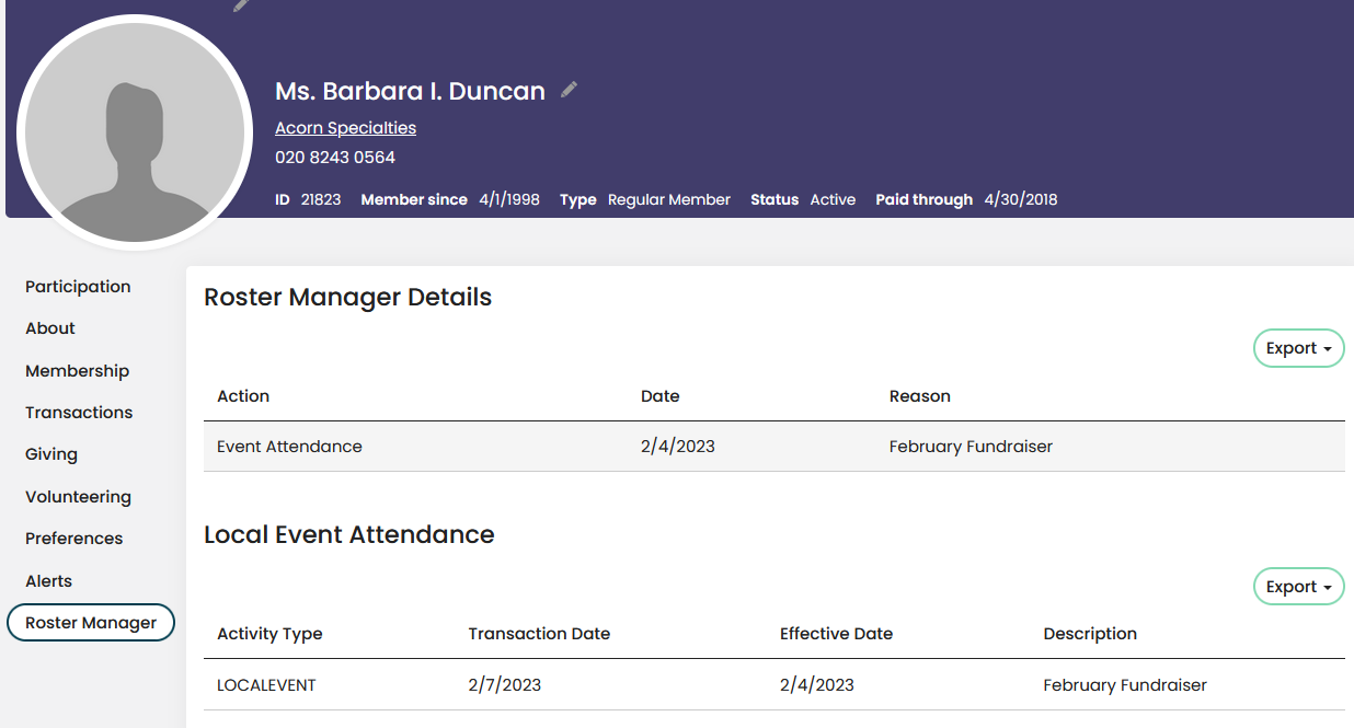 Information added to CSI_RosterManager_ActionDetails panel (using IQA to show details on member record)